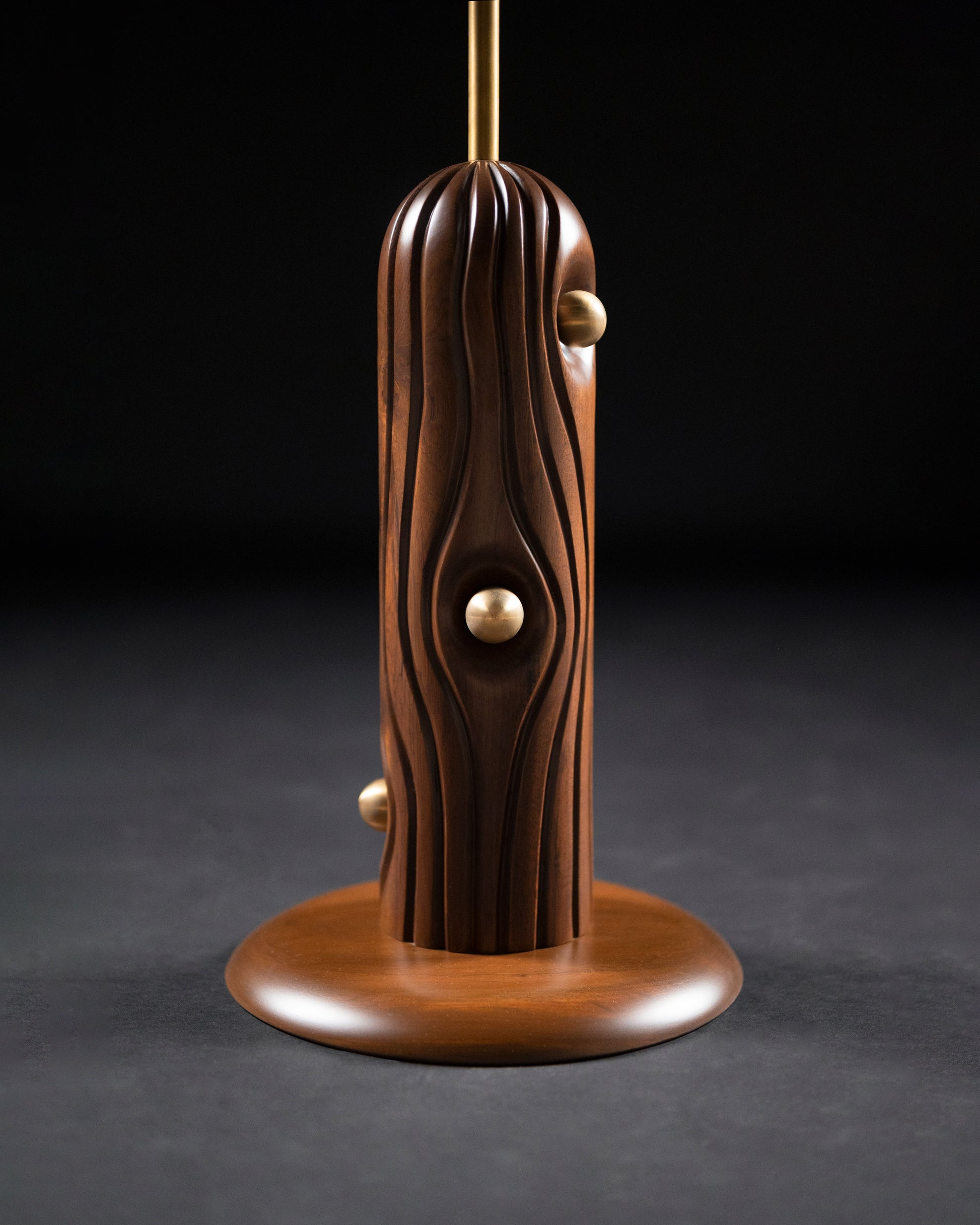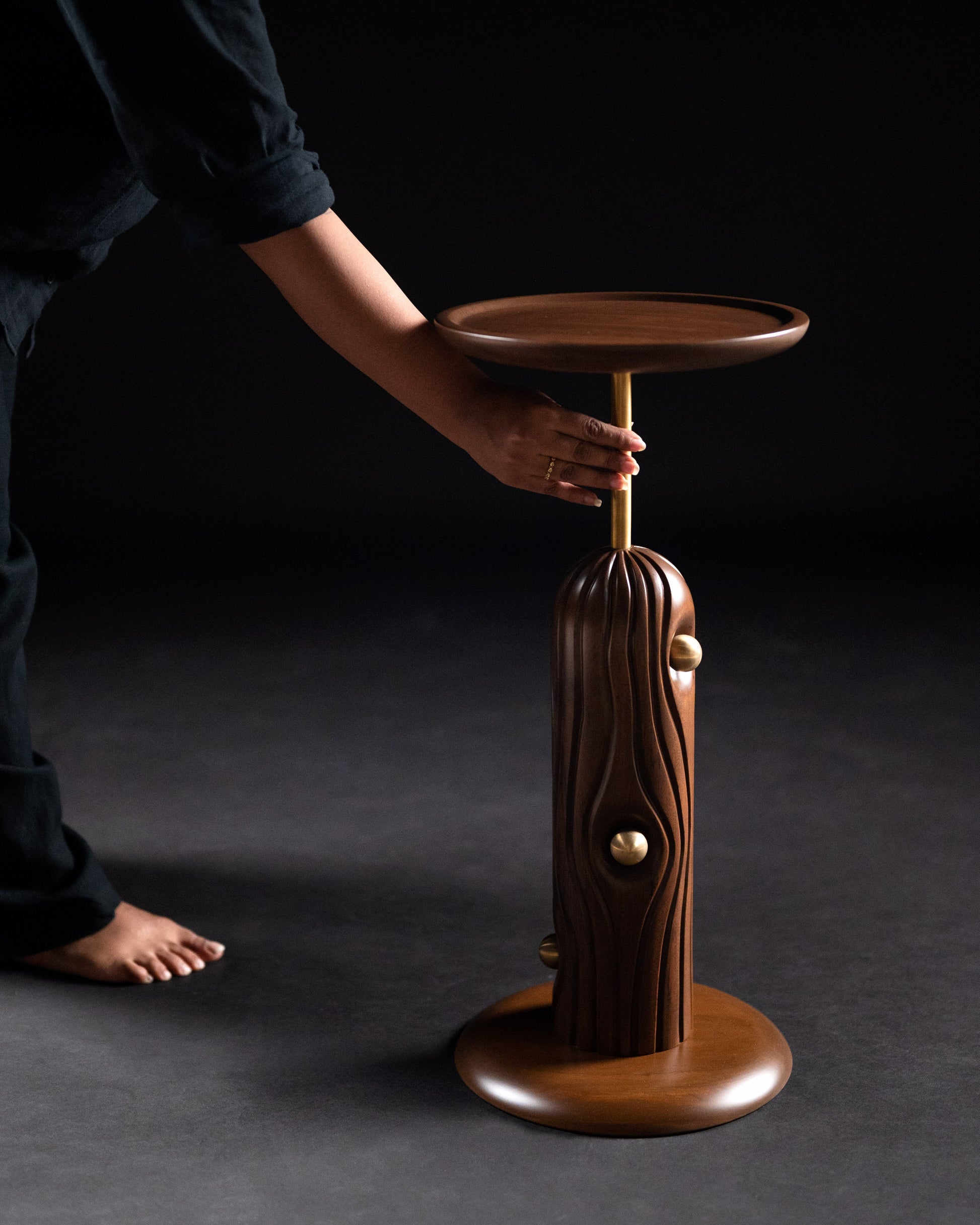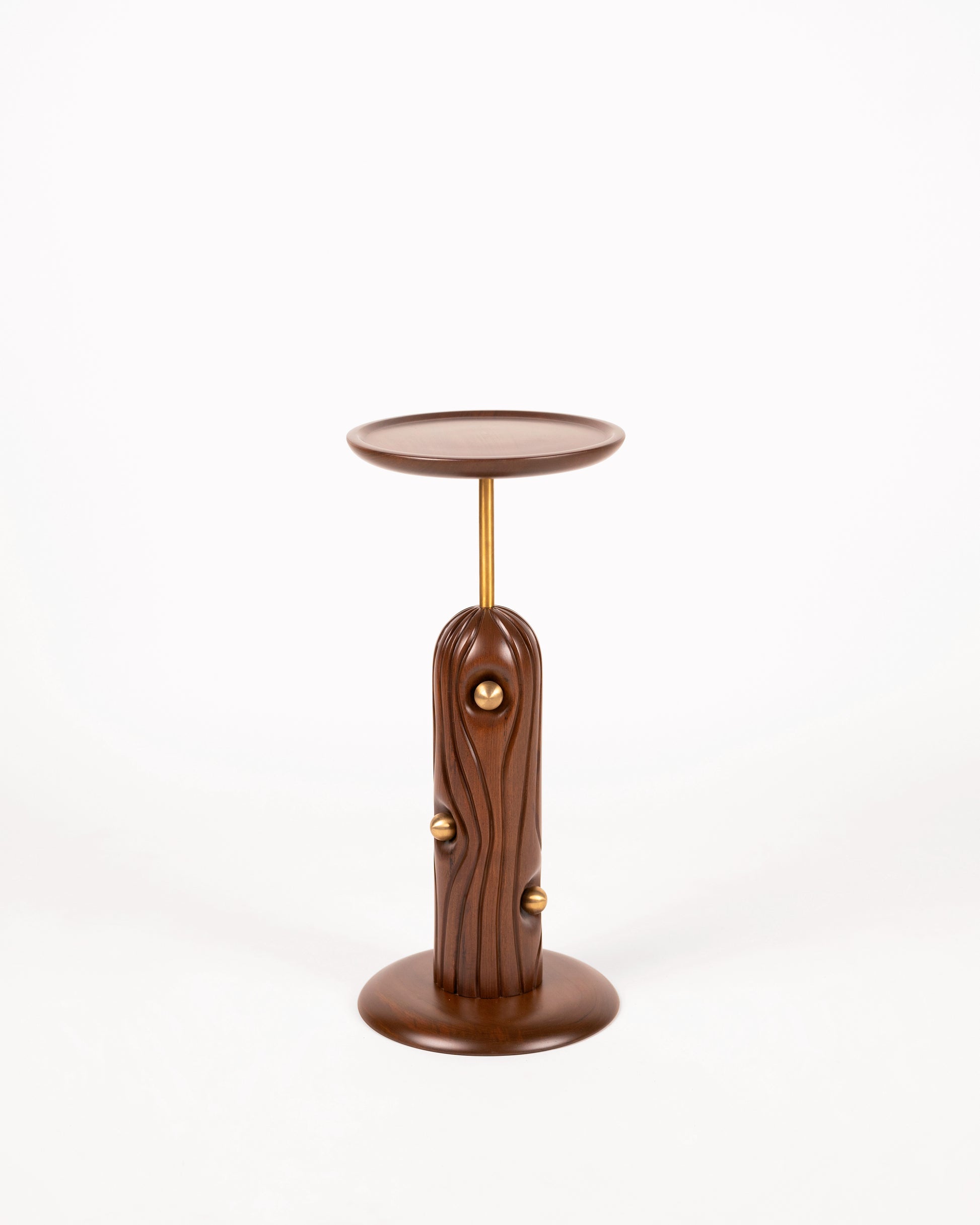 The Linea cocktail table blurs the boundary between furniture and sculpture. Flowing carved lines and brass nodes animate its wooden form, making it both a functional surface and an art object. The Linea introduces rhythm, texture and a quiet drama to a space, becoming a distinctive focal point that adds depth and character to its surroundings.
